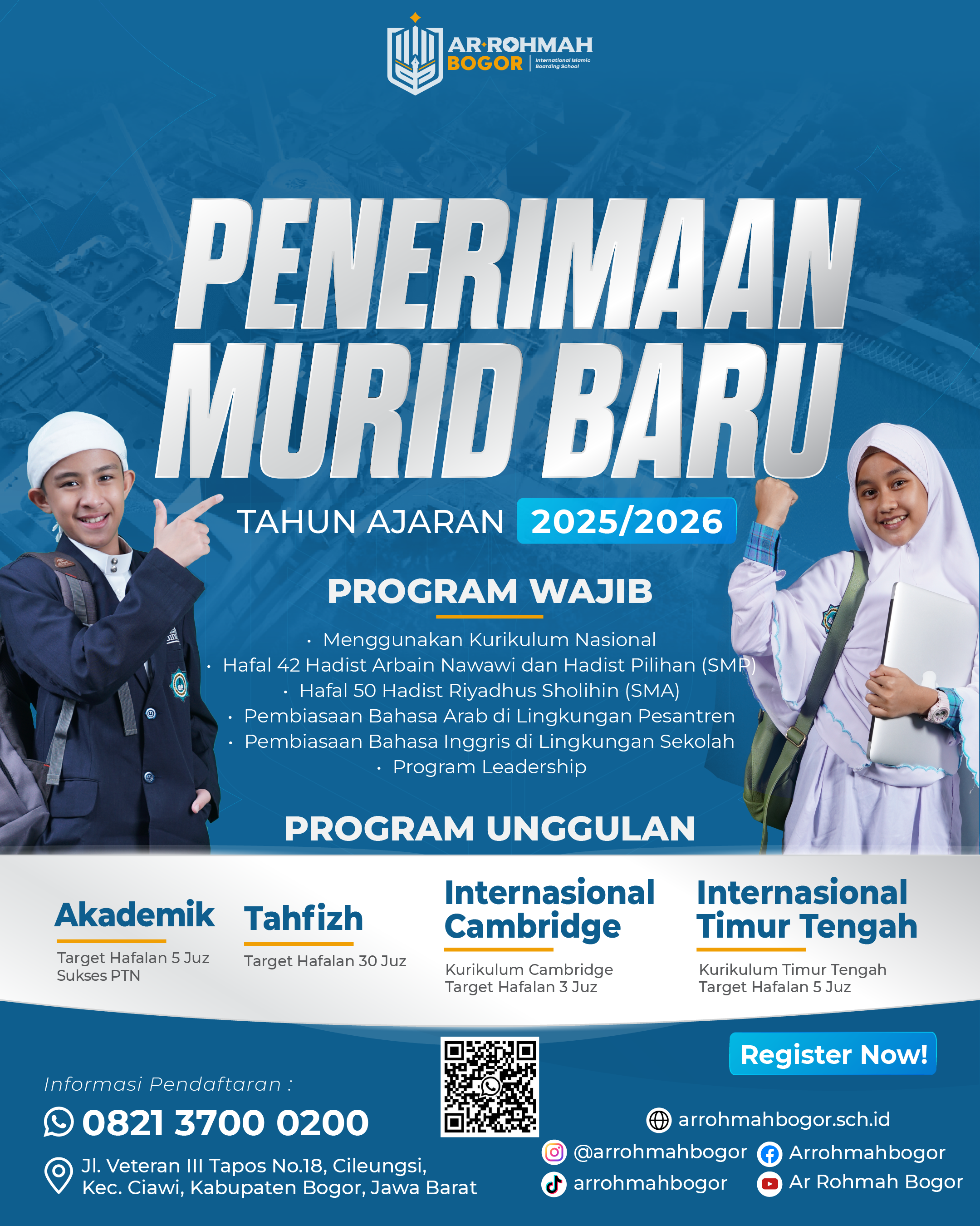 ARROHMAHBOGOR.SCH.ID – Tahun Ajaran 2025/2026 masih beberapa bulan lagi dimulai, tapi calon murid Ma’had Ar-Rohmah Bogor (MAB) sudah dapat mendapat...
